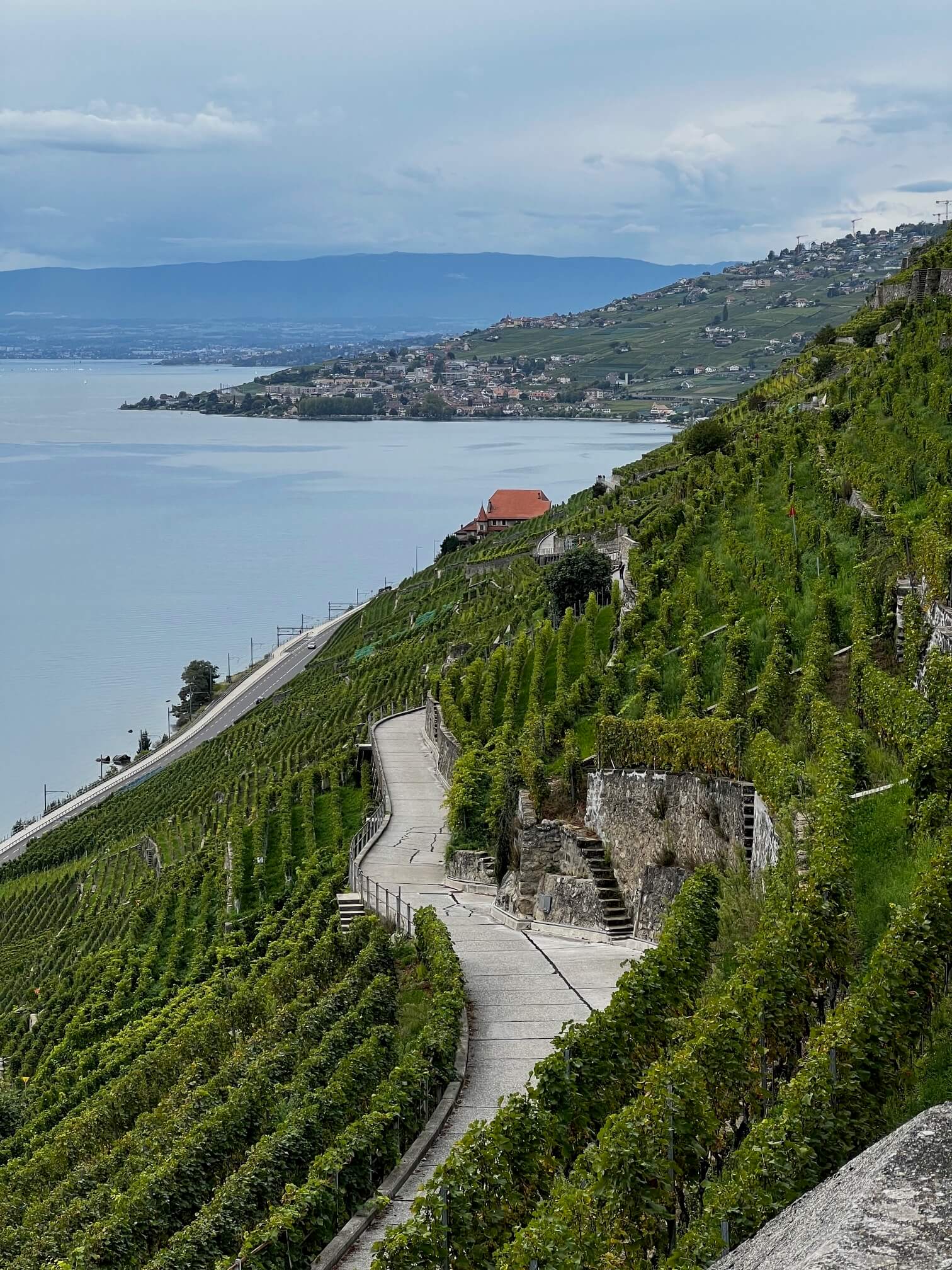 Oberhalb von Vevey, traumhaft gelegen am Fusse des Weinanbaugebiets Lavaux, logieren wir mit einem herrlichen Blick auf den See und die Berge. Zimmerbezug im Hotel du Léman mit seinem romantischen Hotelpark.