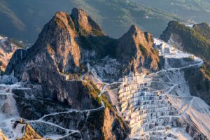 Aus der Ferne wirken die gigantischen weissen Marmorsteinbrüche, die bis auf 1000m Höhe in den Apuanischen Alpen hinaufreichen, wie grosse Schneefelder. Sie tauchen in die Geschichte des „weissen Gold“ der Toskana ein. Sie erfahren mehr über die faszinierende Abbautechnik und den Transport, von der Römerzeit bis heute. Inmitten dieser majestätischen Bergwelt verkosten wir den köstlichen Lardi-di-Colonnata Speck, der über 100 Tage in Marmortrögen gereift ist.